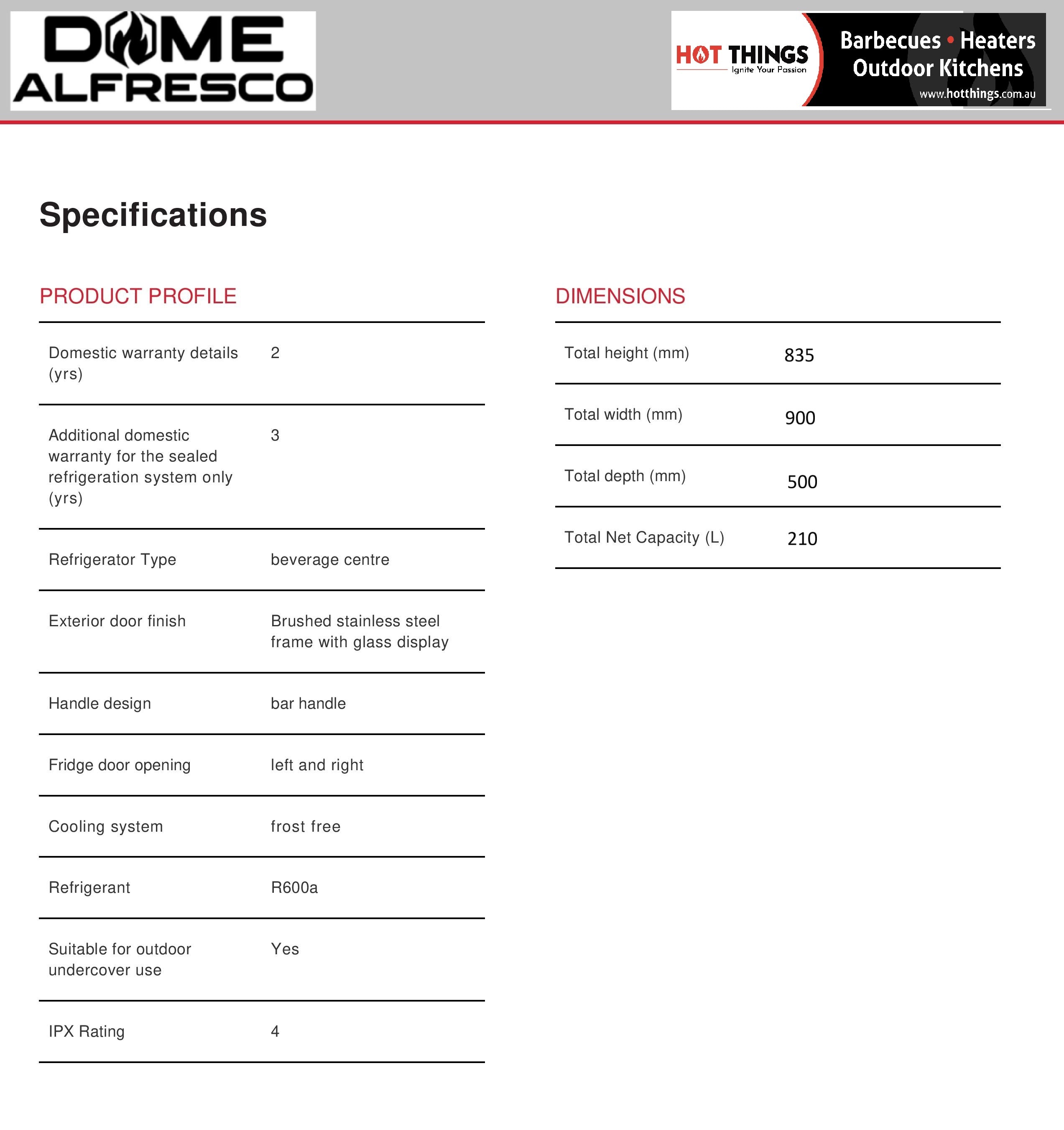 900w x 495d x 850h (mm) - Total Net Capacity (L) 220