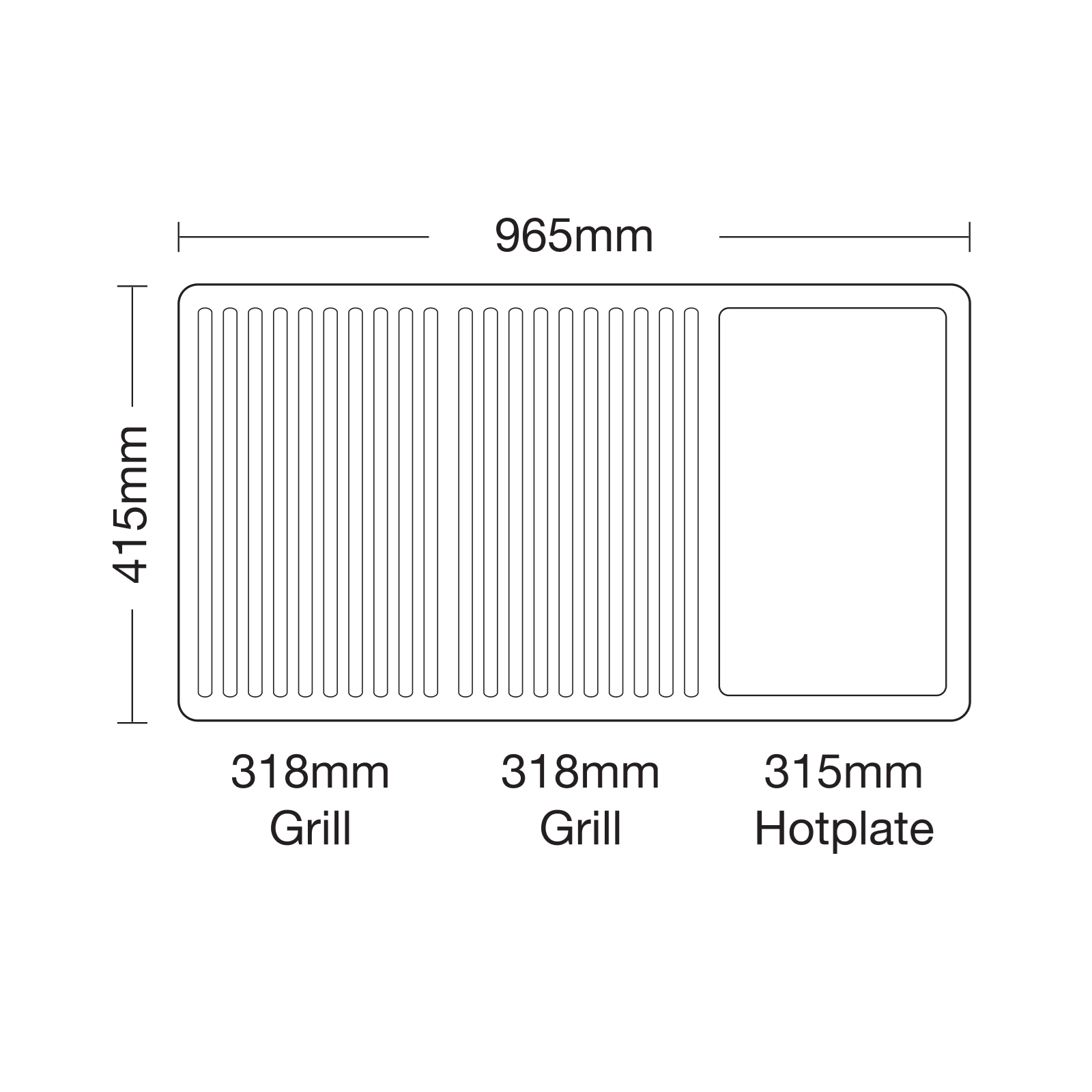 - Cooking Surface / grill (mm) - 318 W x 415 D x 2