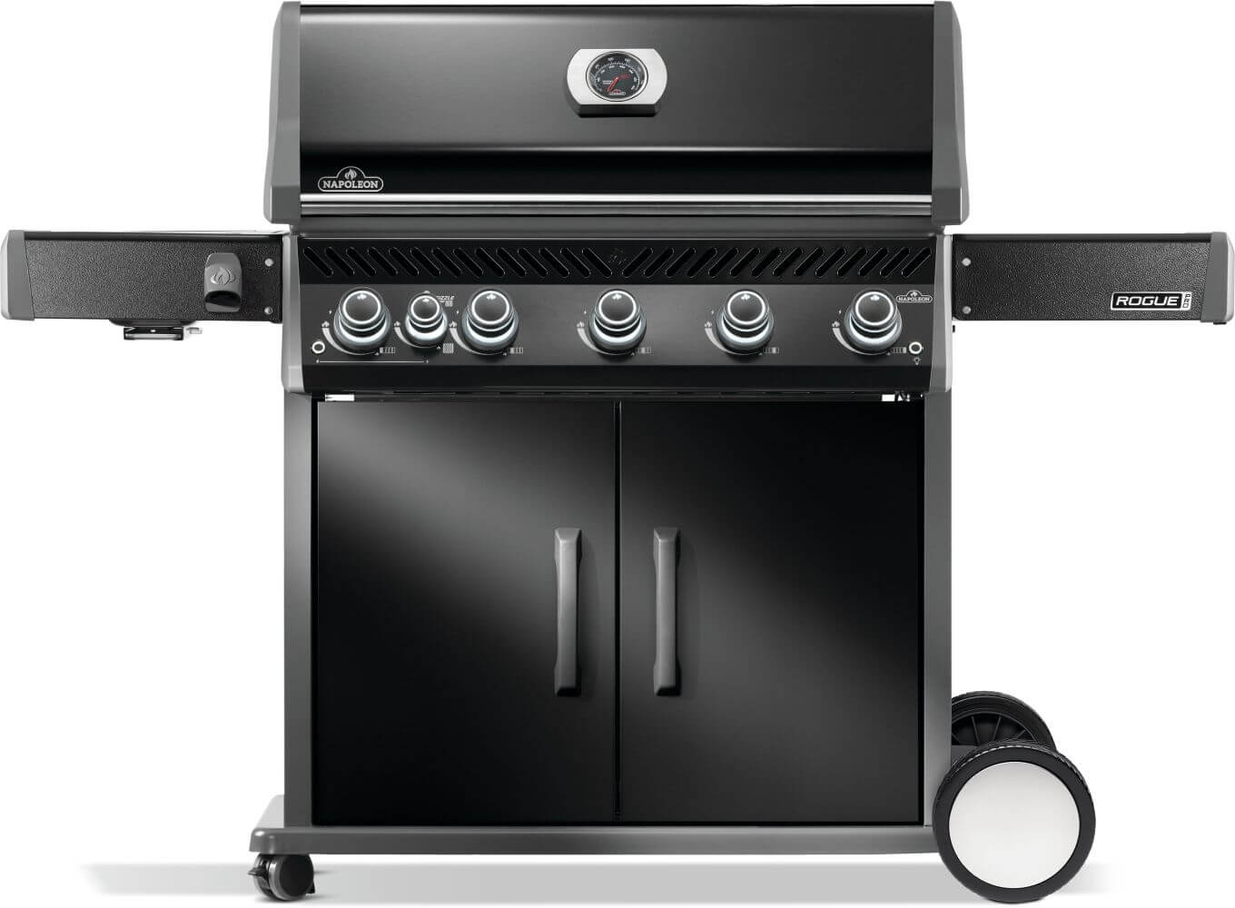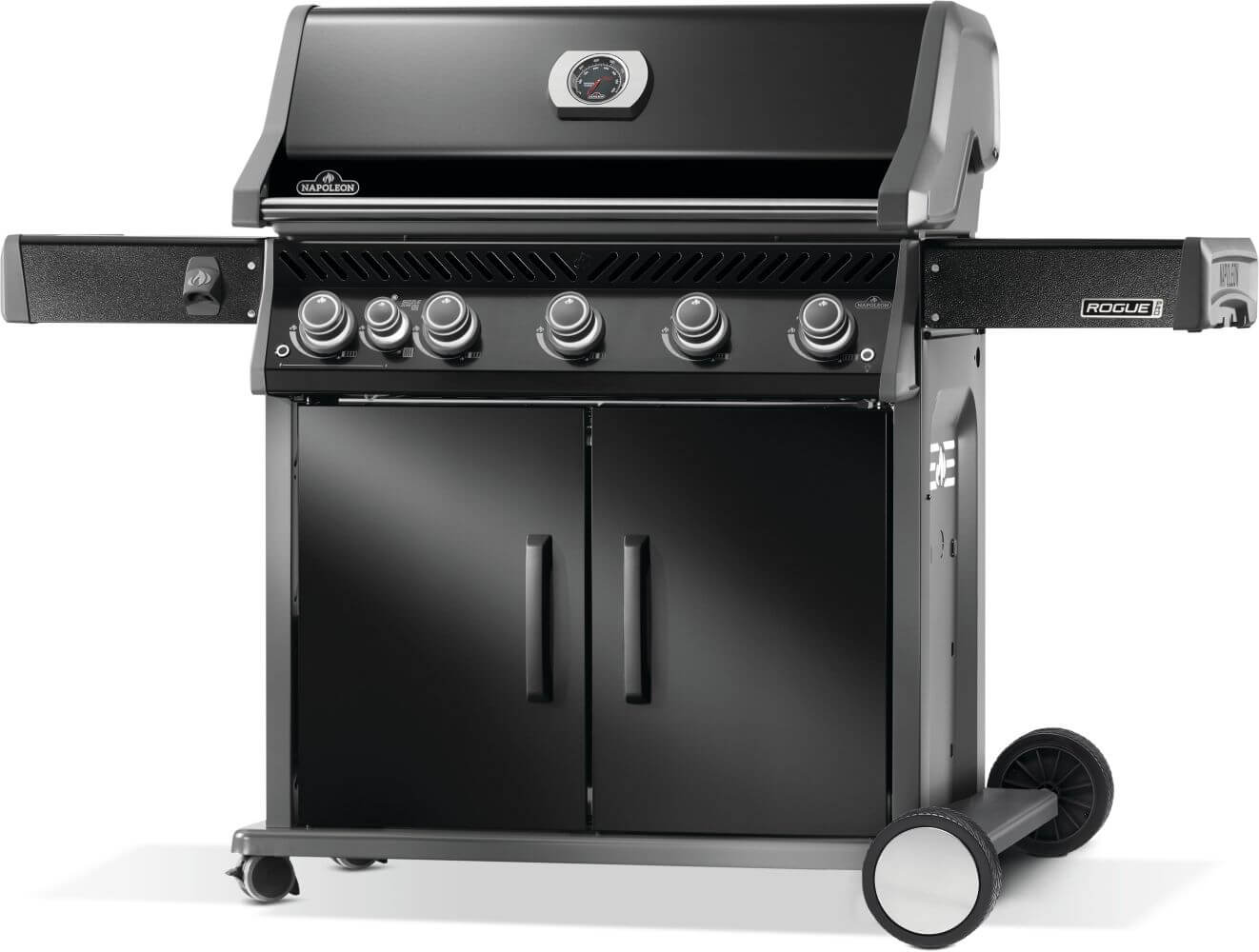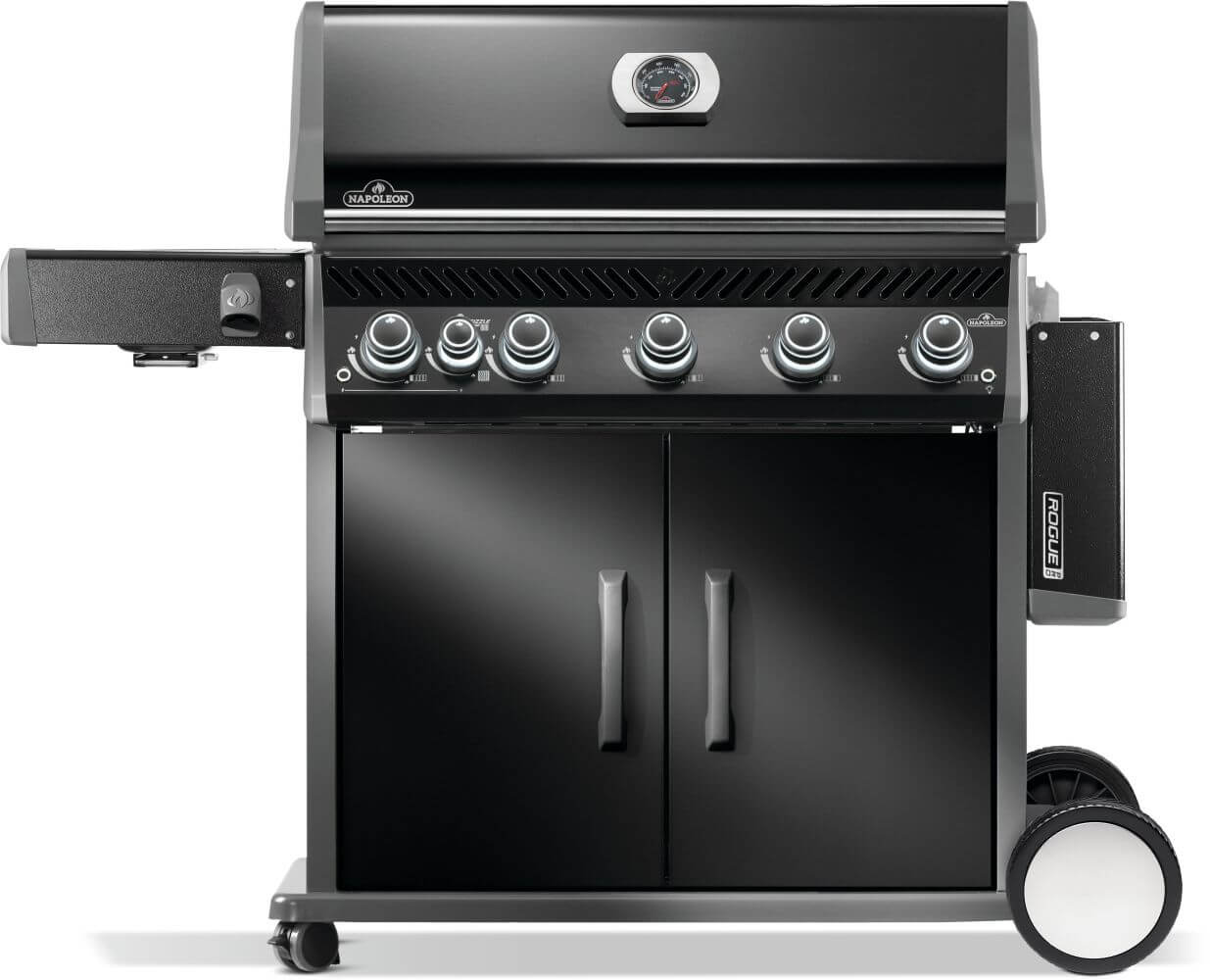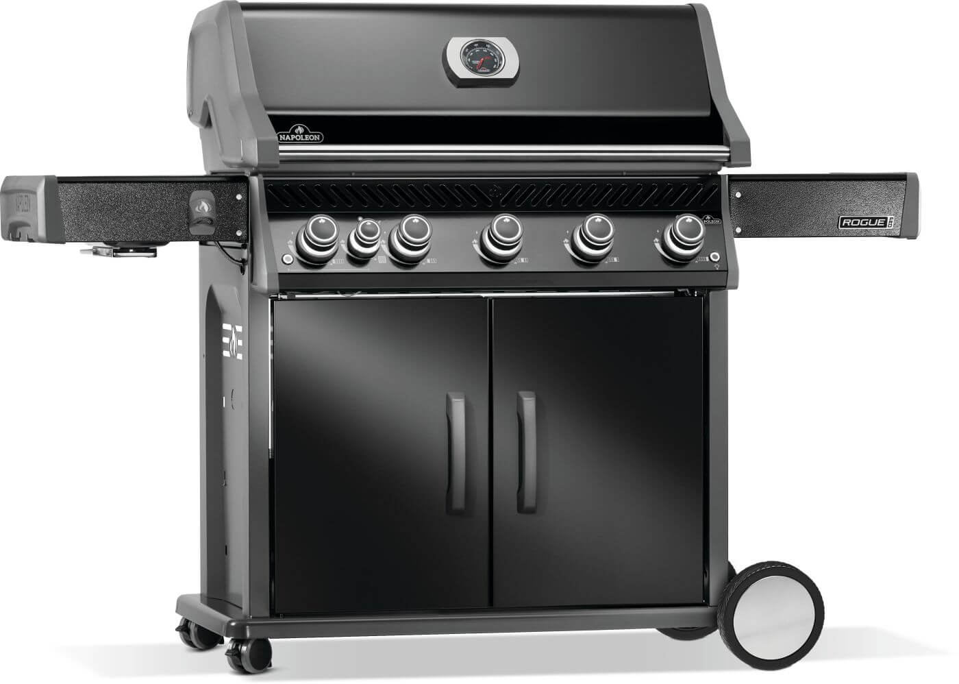 The Rogue® PRO 625 Black Propane Gas Grill with Infrared Side Burner features three bottom burners and stainless steel cooking grids.
