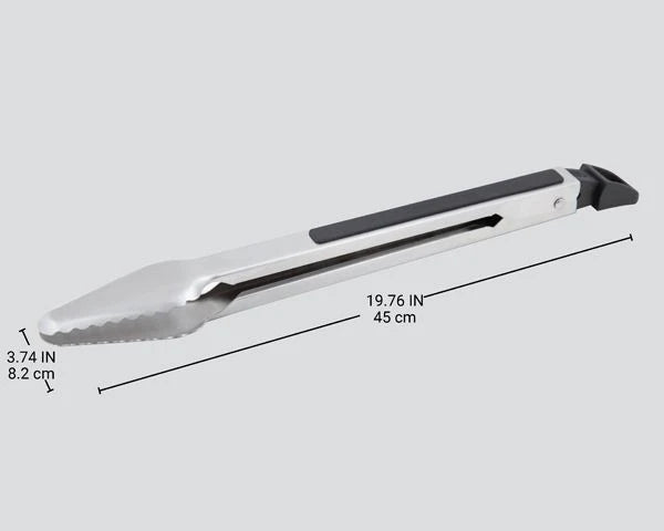 An ergonomic soft-grip handle and locking mechanism ensure comfort and easy storage. Perfect for flipping steaks, fish, or veggies on any grill.